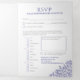 Hand drawn growing leaf botanical art wedding all-in-one invitation. Personalise this detachable reply wedding invitation with your own wedding ceremony details, schedule, accommodation, and other information as well as meal options, replies. Simple blue purple leaf design circling your own monogram initials on a white background. Other colours and matching wedding items available. © Original leaf drawing and design by Sarah Trett for www.mylittleedenweddings.com on Zazzle.