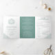 Monogram white green leaves wedding all-in-one Tri-Fold invitation