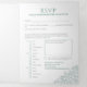 Muted grey-green hand-drawn growing leaf botanical art wedding all-in-one invitation. Personalise this detachable reply wedding invitation with your own wedding ceremony details, schedule, accommodation, and other information as well as meal options, replies. Simple green leaf design circling your own monogram initials and on white and green. Other colours and matching wedding items available. © Original leaf drawing and design by Sarah Trett for www.mylittleedenweddings.com on Zazzle.