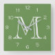 Monogram White Numbers On Green wccnt Square Wall Clock