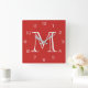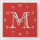Monogram White Numbers On Red wccnt Square Wall Clock
