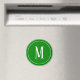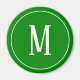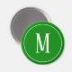 A round magnet with a white monogram on a green background. Customise the magnet with your own initial or initials, colours, among other options.