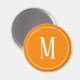 A round magnet with a white monogram on an orange background. Customise the magnet with your own initial or initials, colours, among other options.