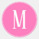 Monogram White on Pink Round Sticker