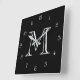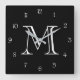 Monogram White Script Numbers On Black wccnt Square Wall Clock