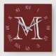 Monogram White Script Roman Numbers On Red wct Square Wall Clock
