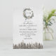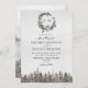 At the bottom of the invitation, a line of woodland evergreen trees enhances the winter theme, creating a serene and picturesque scene. The invitation details are elegantly presented in a sophisticated font, complementing the overall design. Printed on high-quality textured paper, the "Monogram Winter Watercolor Floral Wreath Wedding Invitation" combines natural beauty with personalised elegance, ensuring a memorable and captivating experience for your guests.