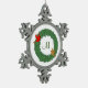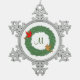 Monogram with Cardinals in Evergreen Wreath Snowflake Pewter Christmas Ornament