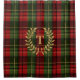 Destei's plaid pattern in classic red and green color scheme together with a beautiful laurel wreath with a personalizable monogram initial inside it.