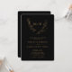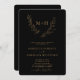 Monogram Wreath QR Code Gold on Black Wedding Invitation