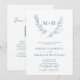 Monogram Wreath QR Code Teal Blue Wedding Invitation