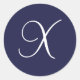 Monogram X, White on Navy Blue, Classic Round Sticker