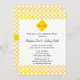 Monogrammed yellow quatrefoil pattern on white background wedding invitations.