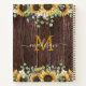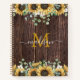 Monogram Yellow Sunflower Brown Wood Recipe Book