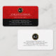 Cover features an upper red grunge layer design that has a thin white line near its base. At the top is an empty gold circle logo where you can place your name initials-monogram (You can use different sizes of fonts or styles to your liking). Underneath this is your prestigious name and the job title which you can change. Inside the black layer are your contact details.