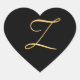 Monogram Z, gold coloured initial Z on black Heart Sticker