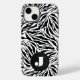 A stylish cell phone case features your monogram initial on black and white zebra stripes animal print pattern. CHOOSE YOUR MODEL and STYLE WHEN ORDERING! Create for yourself or give as a gift. MATCHING drawstring bag, luggage tag, suitcases and more items in our travel collection.