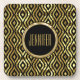 Monogramed Black & Metallic Gold Geometric Pattern Coaster