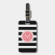 Monogramed Black & White Stripes & White Wreath Luggage Tag