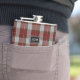 Handsome flask with the classic red, green, and grey clan MacFie tartan plaid pattern. Personalise the three letter monogram, on the metal looking plaque, to suit your needs. Great gift idea for any guy and especially great as a wedding party gift for groomsmen.
