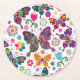 Monogramed Colourful Butterflies & Flowers Pattern Round Paper Coaster