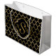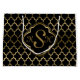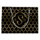 Monogramed Gold & Black Quatrefoil Pattern Large Gift Bag