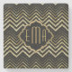 Monogramed Gold Glitter & Zigzag Chevron Pattern Stone Coaster