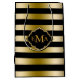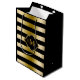 Monogramed Gold Tones & Black Stripes Pattern Medium Gift Bag