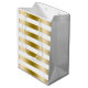 Monogramed Gold Tones & White Stripes Pattern Medium Gift Bag
