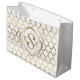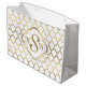 Monogramed Gold & White Quatrefoil Pattern Large Gift Bag