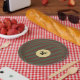 CHristmas vibes inspired Minimalist simple stripped design with red stripes over green background that you can personalise by adding your initials and your lover and family's names to get a cool matching family initial paper plate for winter holiday 2022