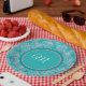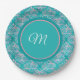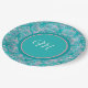 A Beautiful Pattern Party Paper Plate In A Teal And Pink Pattern You Can Initialize Center