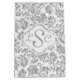 Elegant metallic silver floral damasks over white background you can change. Silver damasks is with transparent background. Customisable and optional monogram