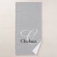 Beautifully designed monogram initial and name combination to be personalised on a high quality polyester and cotton bath towel. Large light grey initial and charcoal name on medium toned grey background. Design on both 1/3 of towel for aesthetic appeal. Will add a personal touch to your bathroom. A great housewarming, birthday or Mother's Day gift for someone special.