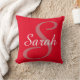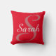 Monogrammed and personalised red, dusty rose and white throw pillow. Large dusty rose initial monogram in black and full name in white on a bright red background. A very classy housewarming, Mother's Day or ladies' birthday gift. Great accent for couches or chairs. Design on front and back.