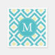 Monogrammed Aqua and Yellow Ikat Pattern Napkin