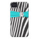 Monogrammed modern aqua blue, black, and white zebra stripes Case-Mate Barely There™ iPhone 4 Case with FAUX ribbon and jewelled brooch.