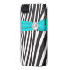 Monogrammed Aqua, Black, White Zebra Striped Case-Mate iPhone Case