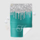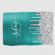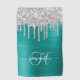 Monogrammed Aqua Teal Silver Dripping Glitter Golf Towel