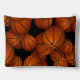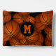 This basketball themed zipper pouch features a random pattern of varied size basketballs turned every which way on a black background - customise with the basketball player's monogram - by katz_d_zynes