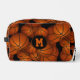 This basketball themed Dopp kit features a random pattern of varied size basketballs turned every which way on a black background - customise with the basketball player's monogram - by katz_d_zynes