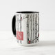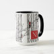 This modern winter and holiday season monogrammed mug features hand-drawn birch trees with red Cardinal birds perched on branches in black ink, against an elegant white background. Personalise with your initial.