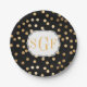Monogrammed Black and Gold Glitter Dots Paper Plate