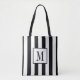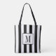 Monogrammed Black and White Striped Tote Bag