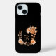 Personalised Monogrammed Black, Brown and Peach Colours Floral iPhone 13 pro case. Also available in other iPhone size cases.