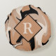 Monogrammed Black Brown Cream Marble Swirl Pattern Round Cushion