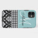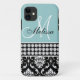 Monogrammed Black Damask Printed Diamonds Blue Case-Mate iPhone Case