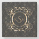 Monogrammed Black & Gold Swirly Circle Frame USB C Stone Coaster
