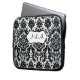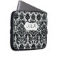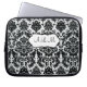 Monogrammed Black, Grey Damask Laptop Sleeve