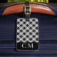Elevate your travel game with our monogrammed luggage tag featuring your initials on a stylish black plaid design. This simple and professional accessory is perfect for the modern traveller, adding a touch of personality to your bags. The back offers ample space for your contact information, ensuring your luggage is easily identifiable.